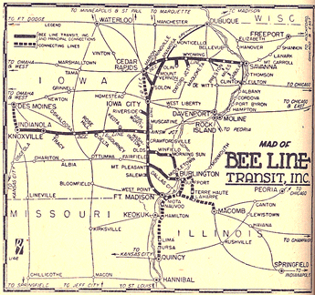 Original route was Savanna-Cedar Rapids. Operated until 1949.