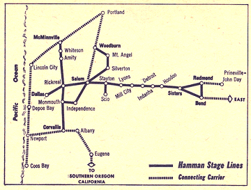 Formed 1909 as stagecoach company. Original route was Salem-Bend. Operated until 1981, with some replacement service operated 1981-1983 by Gold Crown Coaches.