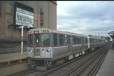 CTA's largest series of cars are 2601-3200, built by Budd in 1981-1987. Cars are assigned to the Red Line, the Blue Line, and a few to the Purple Line. Location is the Belmont stop on the Red Line in 1996, prior to rebuilding by by Alstom in Hornell, NY.