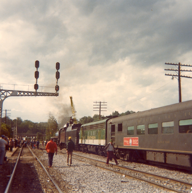 Asheville, more specifically the Biltmore area, where the train would be turned. Behind the steam locomotive was a diesel locomotive (FP7 type), which assisted over some of the hillier segments.