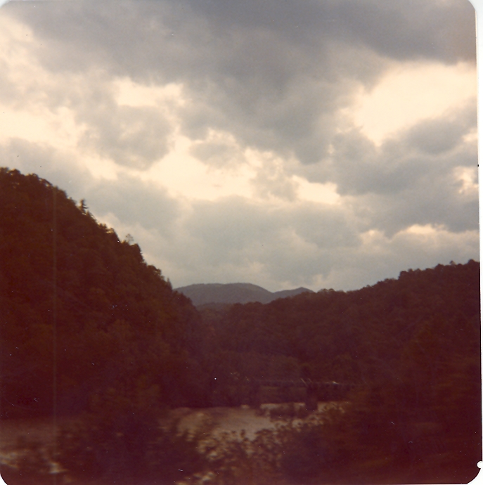 Closer to sunset, as the train approaches the state line near Paint Rock NC.