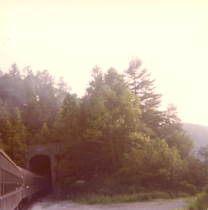 The train enters Tunnel 25, which is between Oakdale and Harriman. The tunnel had been expanded to accommodate taller railroad cars.