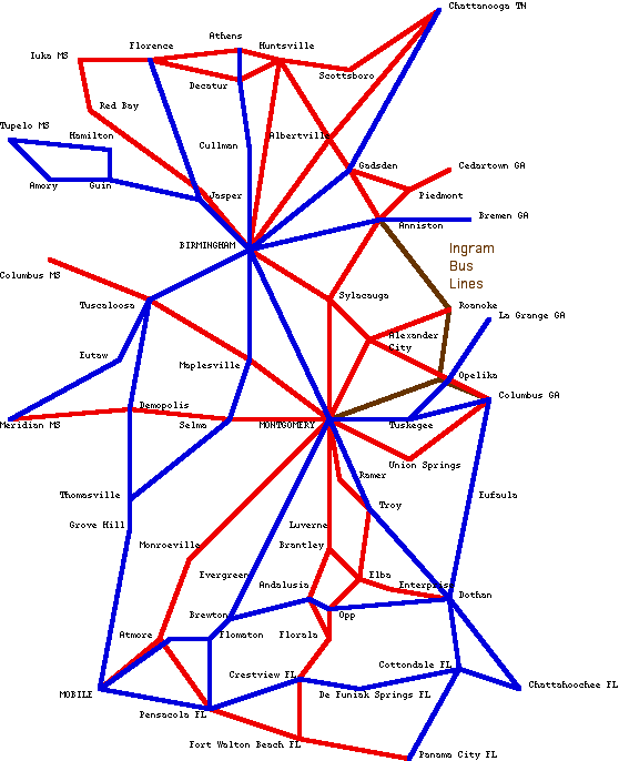 Beginning in 1927, intrastate bus service was regulated by the Alabama Public Service Commission.