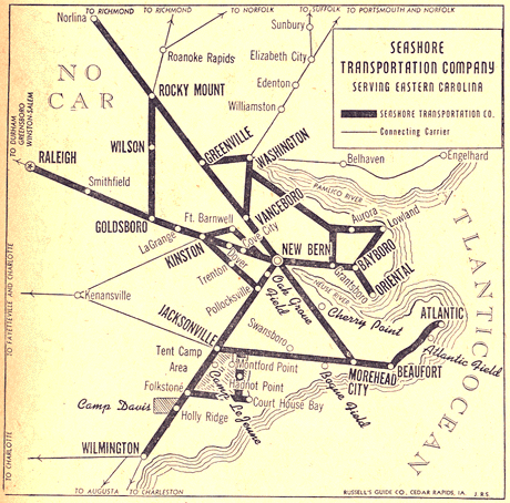 Began operations 1925. From 1980 to 1988 was a Trailways member, operating as Seashore Trailways. In 1988 absorbed into Carolina Trailways.
