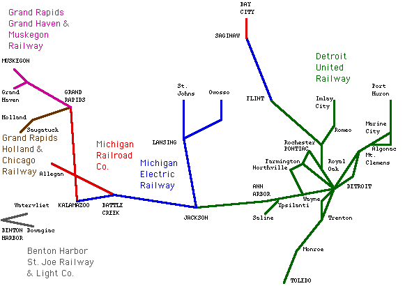 ELECTRIC INTERURBAN MAP - MICHIGAN