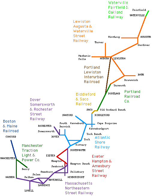 Not all street railway companies are identified on the map. Certain affiliated companies are identified using the same color.