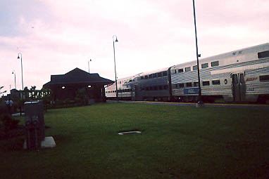 A Metra Southwest train from Chicago pulls into the Orland Park/143rd Street station. The station has since been replaced.