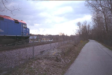 The line becomes more rustic north of Fort Sheridan, where the North Shore Line right of way has been made into a nice trail. A Metra train is seen heading north.