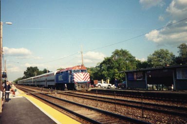 A westbound Metra train at Villa Park.