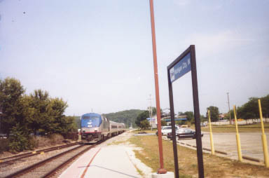 An Amtrak train from Detroit to Chicago arrives at Michigan City.