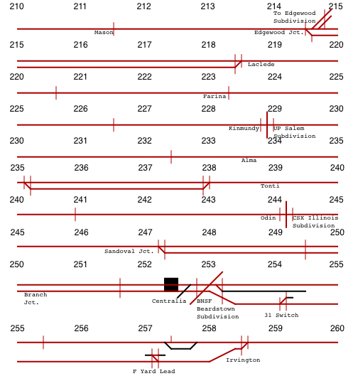 1 track, CTC in use, controlled by Dispatcher Desk #2 in Homewood. Some segments of 2 tracks.