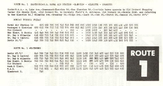 Final schedule for Glenview Bus Co. Route 1.