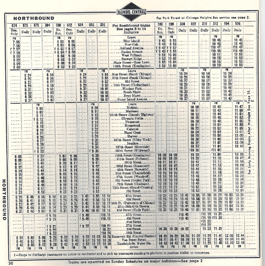 Pages of a 1957 timetable. Schedules for all different days of the week were lumped together.