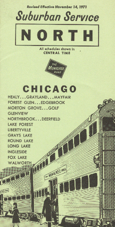 Portions of a 1971 timetable. At the time, a few trains operated beyond Fox Lake to Walworth, Wisconsin.