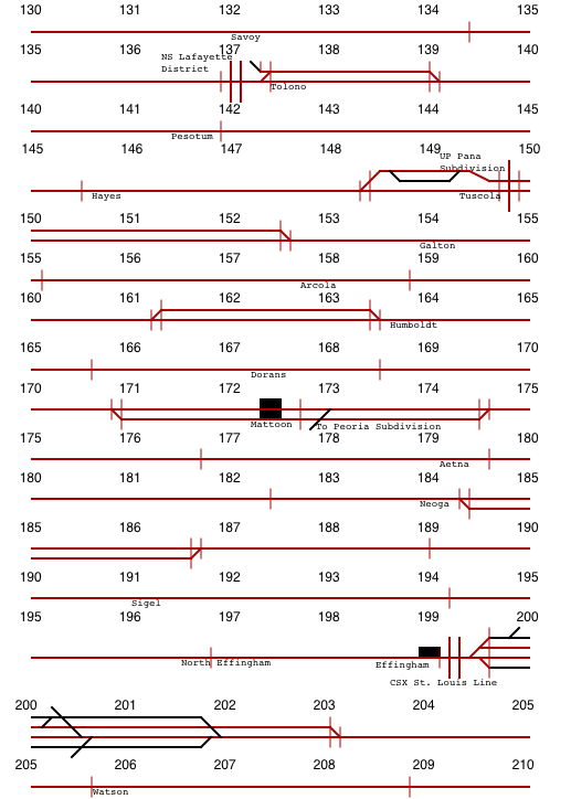 1 track, CTC in use, controlled by Dispatcher Desk #2 in Homewood. Some segments of 2 tracks.