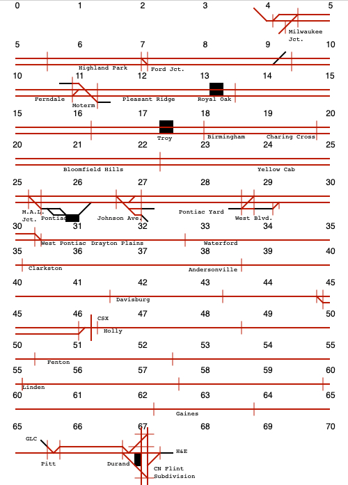 West Pontiac to Durand: 1 track, CTC in use.