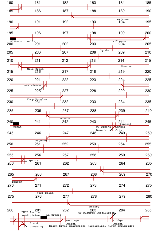 1 and 2 tracks from Portage to La Crosse. CTC in use, controlled by CPKC dispatcher in Kansas City.