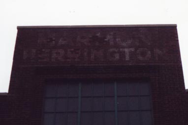 At the top of the machine shop building, the lettering for "MARMON HERRINGTON" was allowed to remain, although faded over the years.