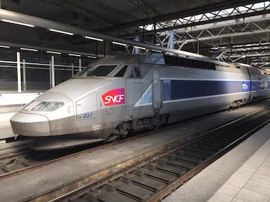 French TGV train at Brussels South Station. These were the first true high speed trains in Europe.
