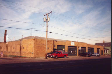 Inside the 1925 car house, the actual car house tracks were in the part of the building away from River St. This photo was taken from River St. looking southeast, and the garage doors in the part of the building to the left may have been where the streetcars actually entered and exited the car house. This building was demolished around 2009.