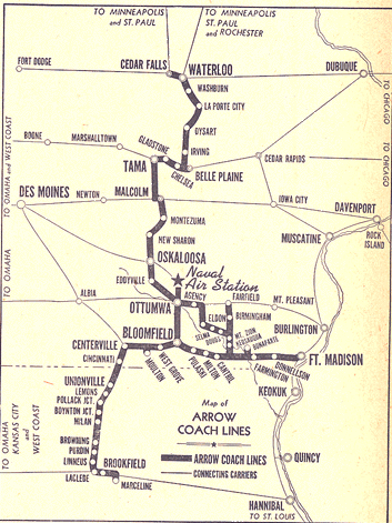 Prior to 1943 was Southern Iowa Route, with route from Ottumwa to Fort Madison. Operated until 1953.