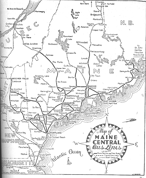 Formed in 1932 as a bus subsidiary of Maine Central Railroad, assuming bus service which since 1925 had been operated by hotel subsidiary SamOset Co., from 1952 to 1955 was Trailways member.