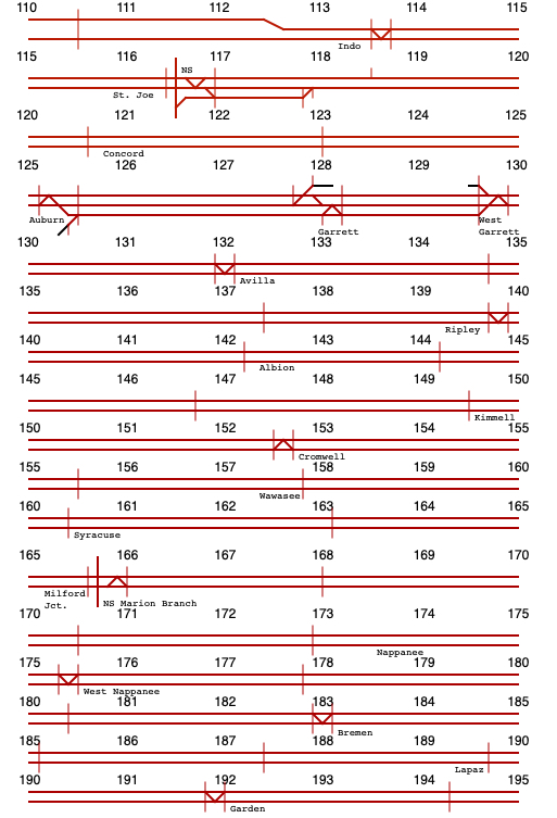 2 tracks, CTC in use. Between Auburn and Deshler controlled by CSX "RM" Dispatcher in Calumet City, between Deshler and Willard controlled by CSX "IP" Dispatcher in Indianapolis.