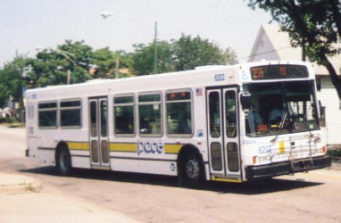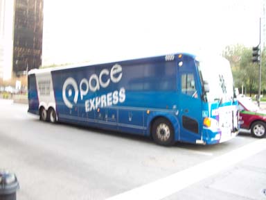 In the year 2002, Pace received the first long distance motor coaches actually owned by them. Eight MCI D4000 coaches arrived for use on express bus routes #877 and #888, operating between the south suburbs and the employment centers of the west suburbs. Bus #6906 is seen at the Oakbrook Mall.