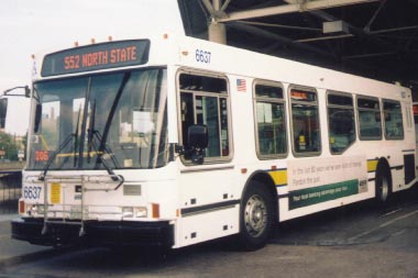 This Pace order from North American Bus Industries also included 35 foot models, including #6637, seen at the Elgin terminal on the #552 route to Spring Hill Mall.