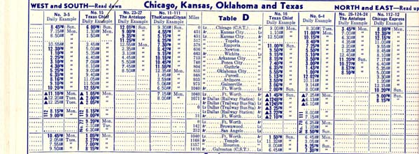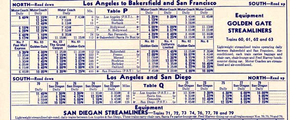 Portions of a 1951 timetable.