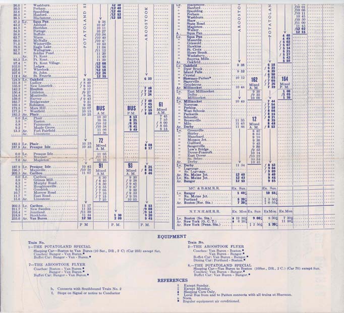 Portions of a 1949 timetable.