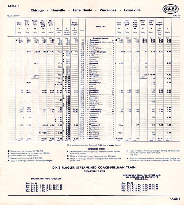 Portions of a 1951 timetable.