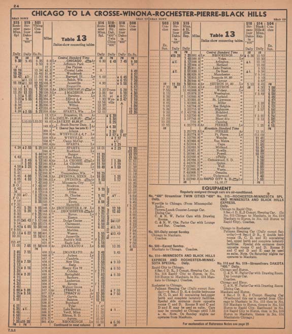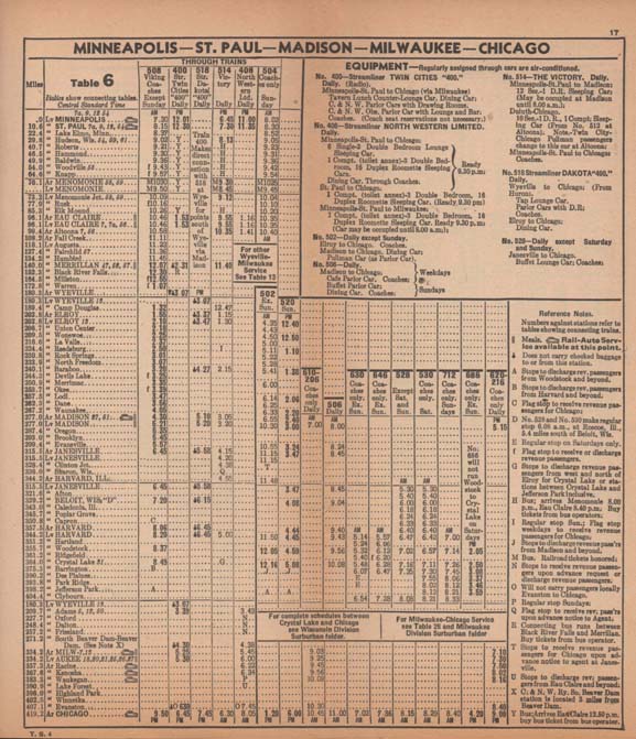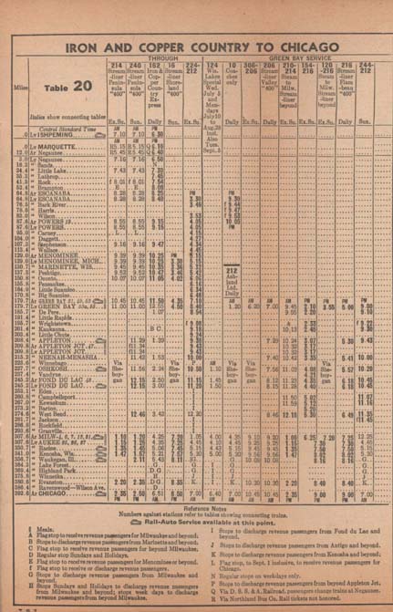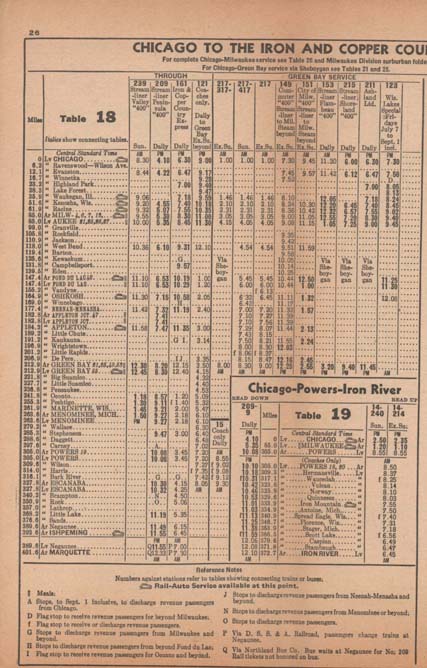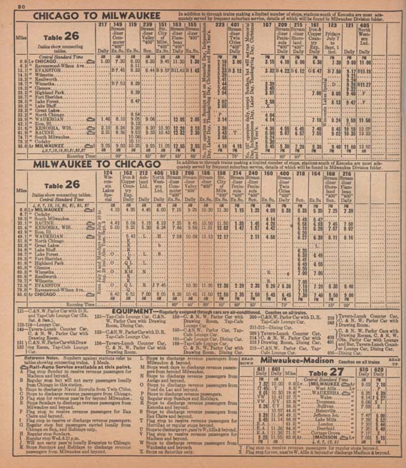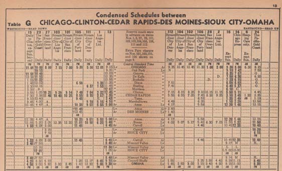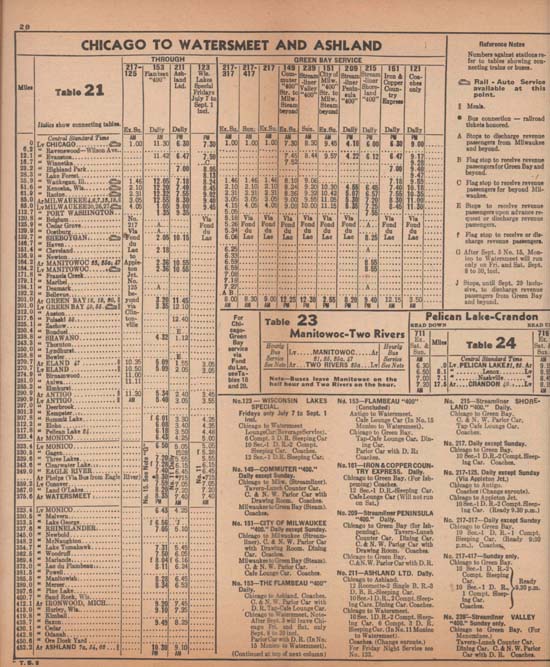 Portions of a 1950 timetable.