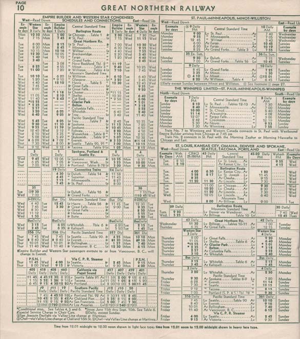 Portions of a 1953 timetable.