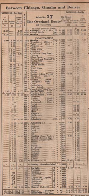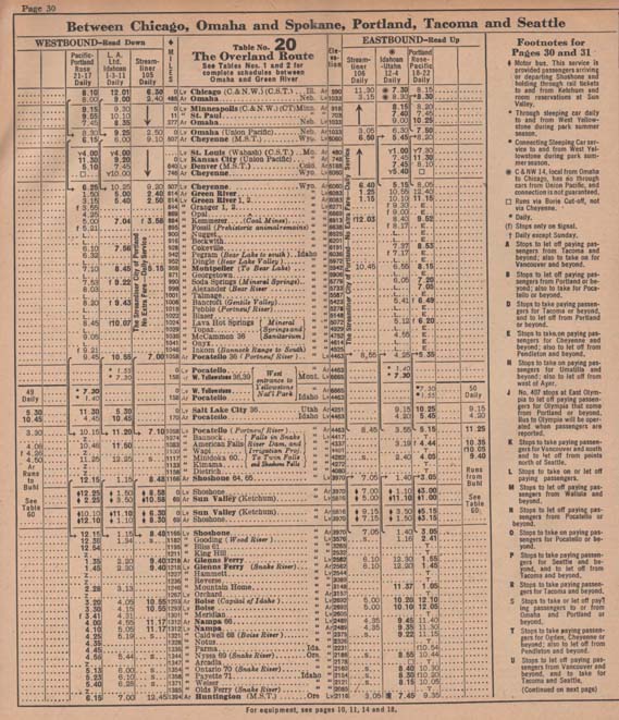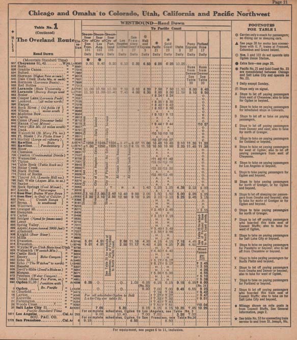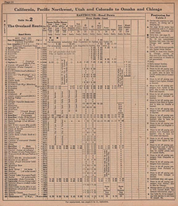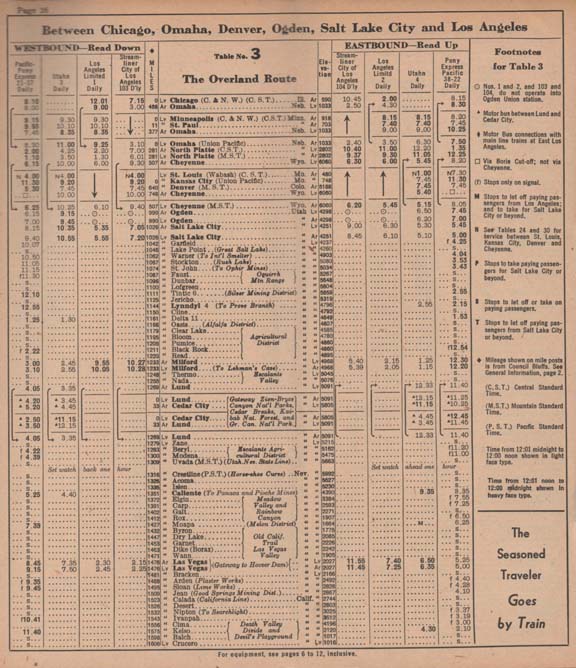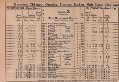 Portions of a 1949 timetable.