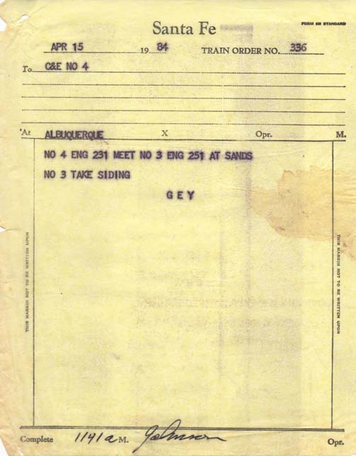 Typical meet order for Amtrak's Southwest Chief, east of Albuquerque.