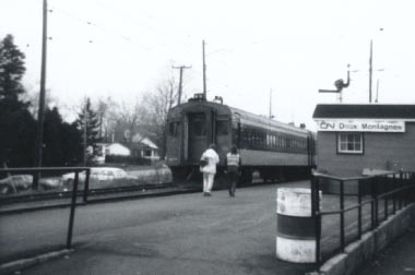On Monday, November 22 I rode #58 into Montreal for the last time. After arriving Central Station, I walked through the underground shops of Place Bonaventure to Windsor Station, where I boarded #160 for Quebec. The train was a single RDC-2 9305, still with CP red trim. Seats had been installed in what had been the baggage compartment, and from there I had a good view of the line ahead. We traveled at 75 mph much of the way on this single track signaled line which was relatively free of curves.