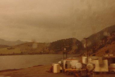 Beyond Provo is Thistle, Utah, location of the mud slides and floods which recently severed the main line and delayed Amtrak's switch from the UP line through Wyoming. The line has been rebuilt at a higher elevation, with a new 3/4 mile single track tunnel on the otherwise double track segment. Outside the tunnel the new lake is visible, with tops of trees and roofs of houses sticking out of the water. It is amazing how quickly things can change with a flood, and also how quickly the new line was built. It was costly for the Rio Grande but shutting down would have been costly, too. The paralleling highway was still closed, which meant additional local passengers for the train.