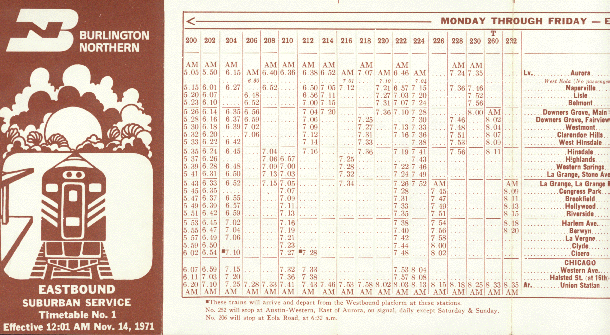 Portions of a 1971 timetable.
